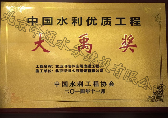 2014年中國水利優(yōu)質(zhì)工程大禹獎(jiǎng)